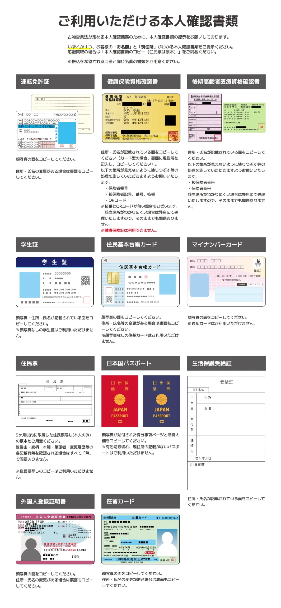 - 7.住民票(発行後3か月以内の原本で、コピーは不可)
