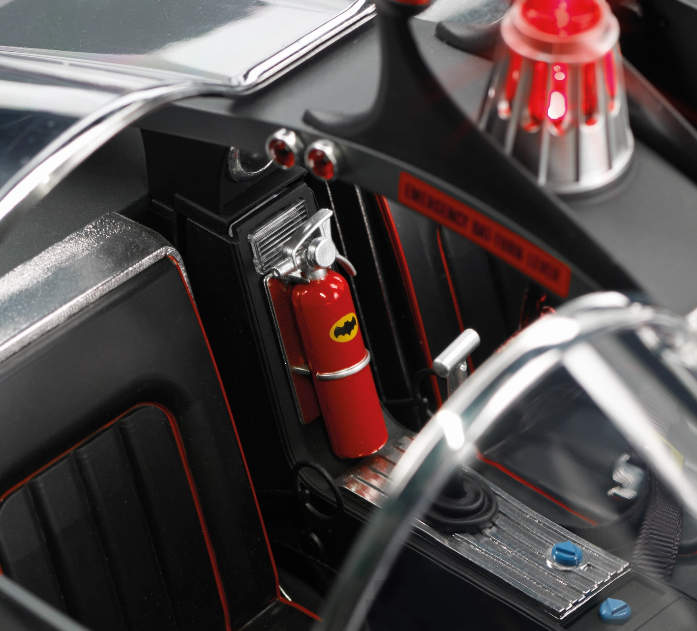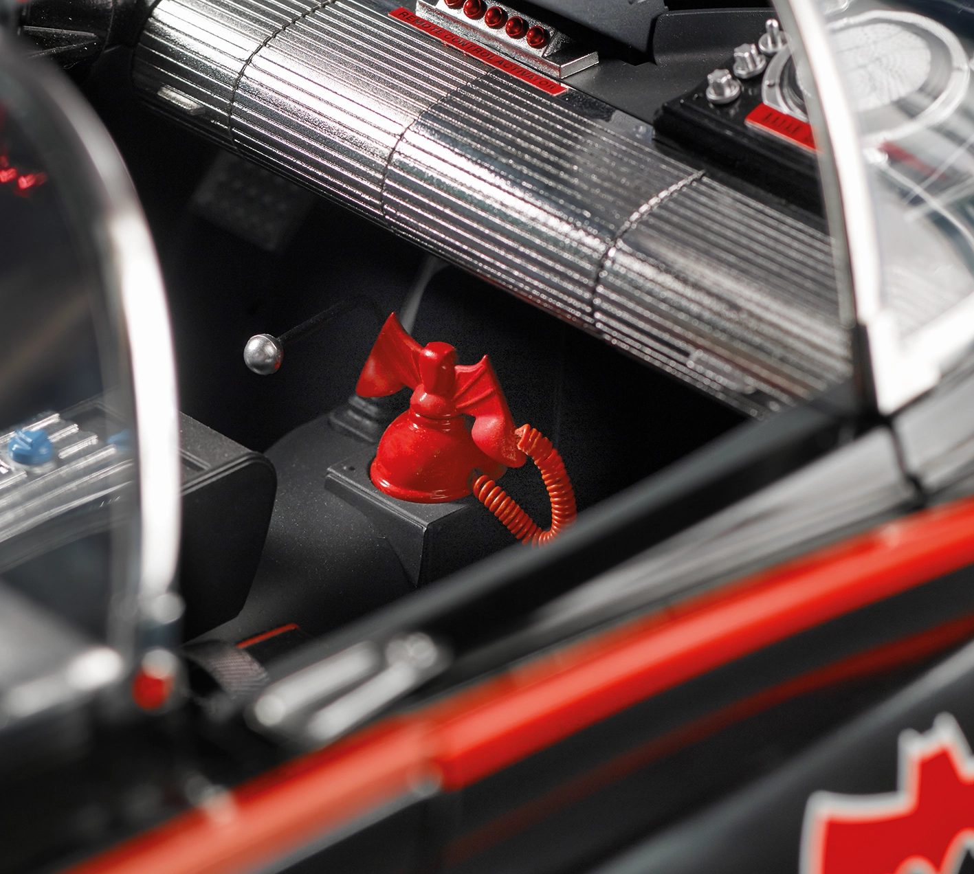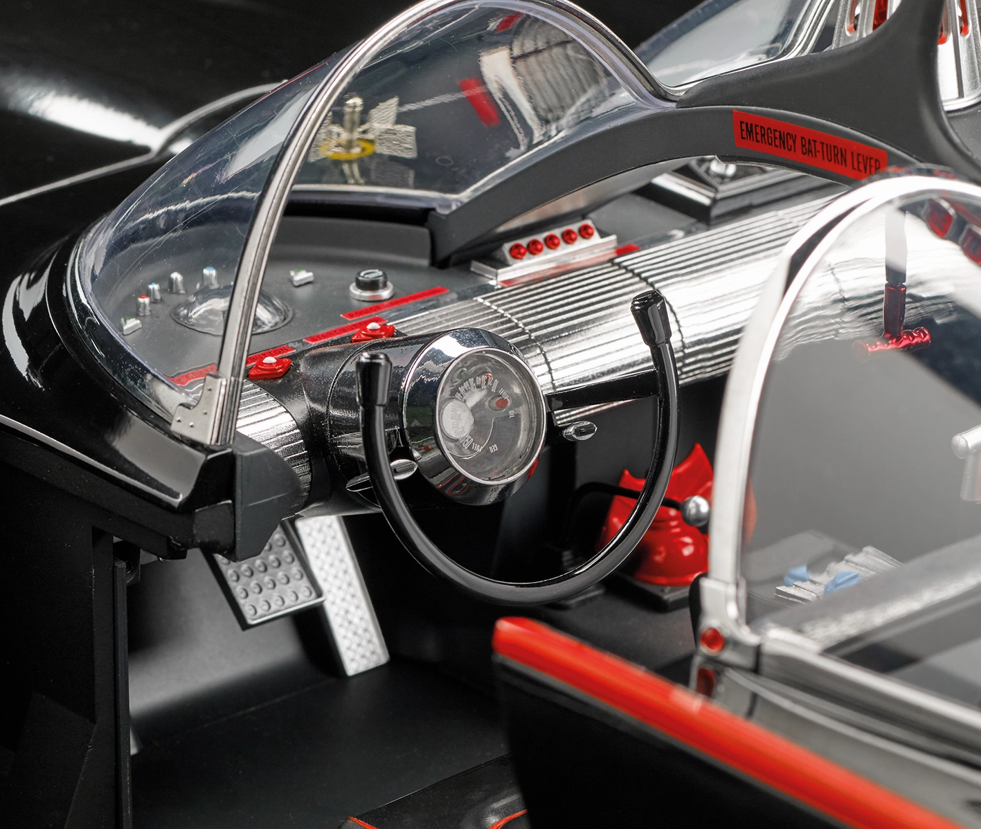 デアゴスティーニではバットモービル1966は現存する実車とテレビ映像を徹底的に分析し、エンジンルーム内やインテリアなど細部に至るまで精密に再現。