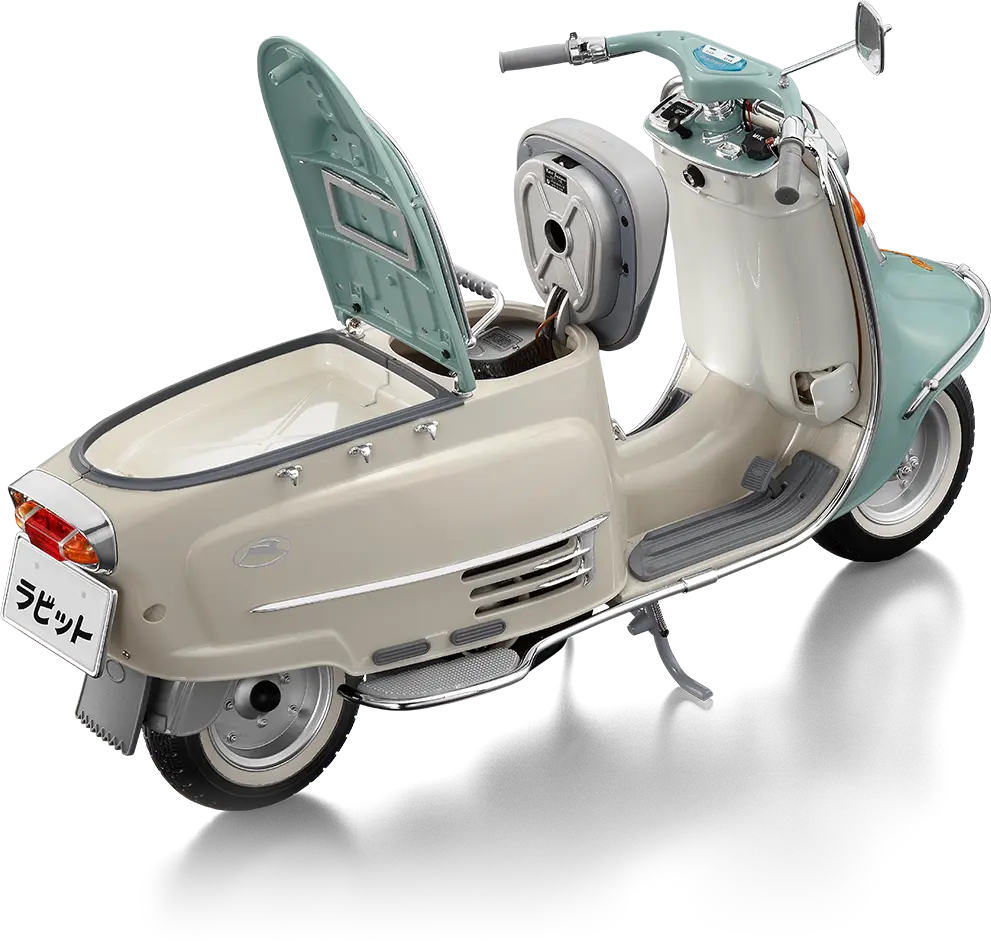 最初の量産モデル・ラビットS-1は1947年2月発売。135cc空冷4ストローク単気筒エンジンを搭載し価格は9,000円、ボディは航空機にも使われていたジェラルミン製でした。その後モデルチェンジを重ね、排気量の異なる各種バリエーションを展開していきます。