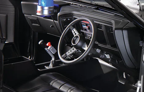 モデルとなっている車両は『MADMAX』の主人公・マックスが搭乗する追跡用車両。彼が所属する特殊警察M.F.P.のいわば切り札で、親友と家族を奪われたマックスがトーカッター一味への復讐のために無断で持ち出したものです。