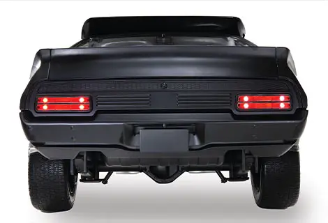 ボディにはダイキャストパーツを多数採用、4輪独立懸架サスペンションやデフ・ギアなども実車同様に再現。ライトのプロテクタやリアウイング、マフラーなどのカスタム箇所も映像に忠実に再現されています。