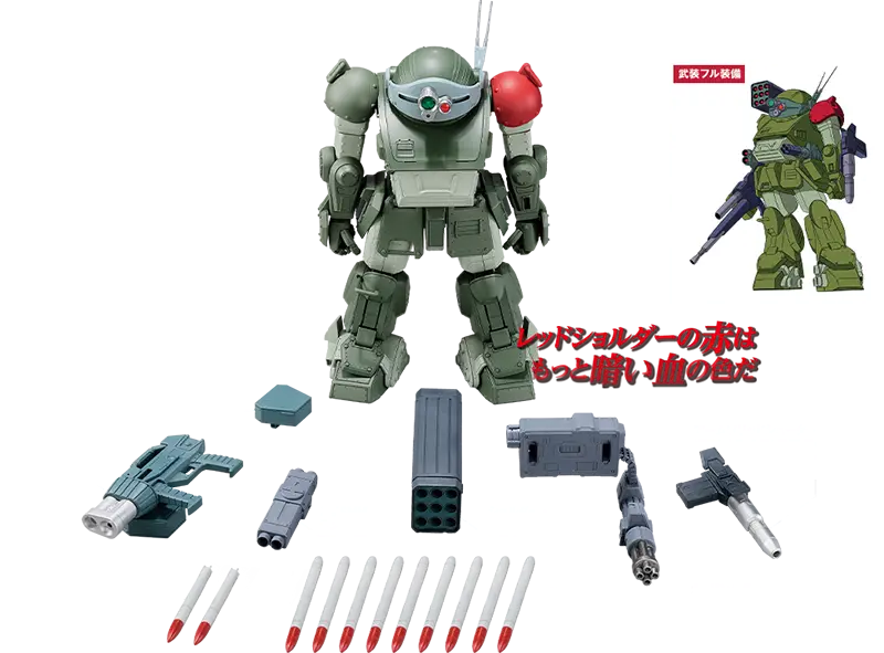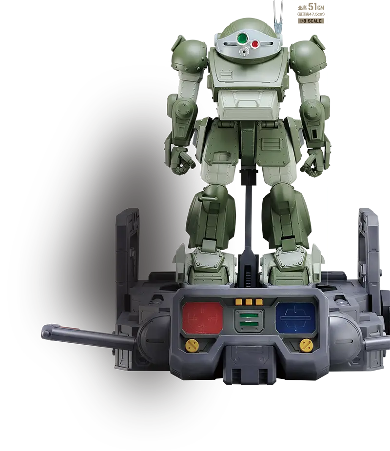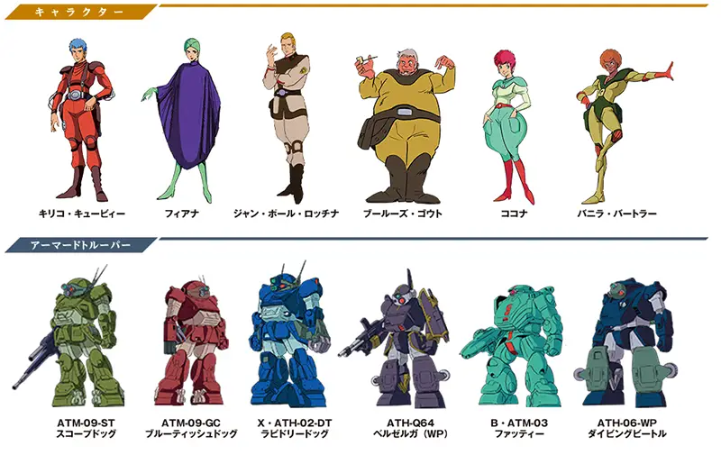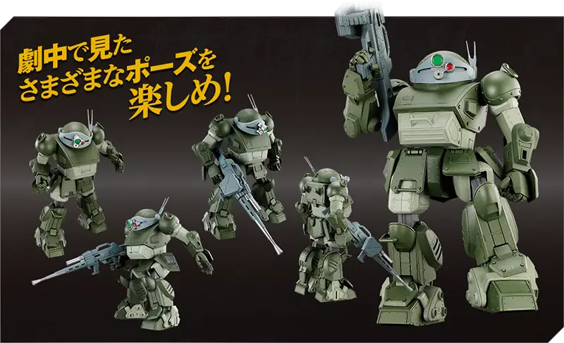 1983年4月にテレビ放送を開始したSFロボットアニメです。監督の高橋良輔はプラモデルが大ヒットした前作『太陽の牙ダグラム』に続いての登板。当時は『ガンダム』に始まるリアルなロボット描写のアニメが主流でしたが、『ボトムズ』では『ダグラム』以上にリアル描写へとシフト。メインメカの全高4mほどのロボット「アーマードトルーパー(AT)」は、主役機のスコープドッグであっても壊れれば次々と乗り換えられるなど徹頭徹尾「兵器」として描かれました。そんな描写にも関わらず、いや、画面やストーリーから鉄と硝煙のにおいが漂ってきそうなそんな描写だからこそ、スコープドッグの魅力は損なわれずいまなお強い人気のあるアニメメカです。